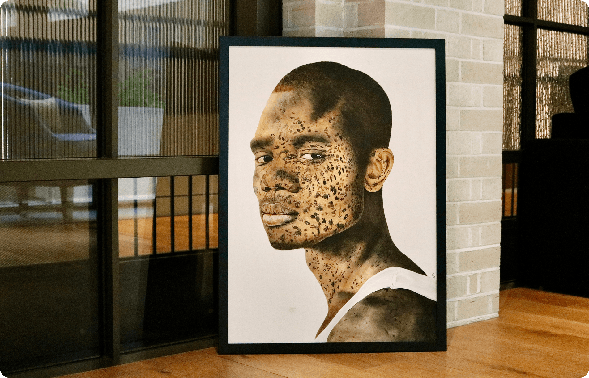 My most recent paintings focus on embracing the uniqueness of individuals with unusual facial pigmentation. As I see it, a fair world is one in which all people - irrespective of race, social class or disability - can have a positive self-concept. Self-concept revolves around the face, as it is the primary means by which humans recognise and interact with each other. Vitiligo is a rare autoimmune skin condition that manifests uniquely in each individual. Having vitiligo myself, I see it first-hand.