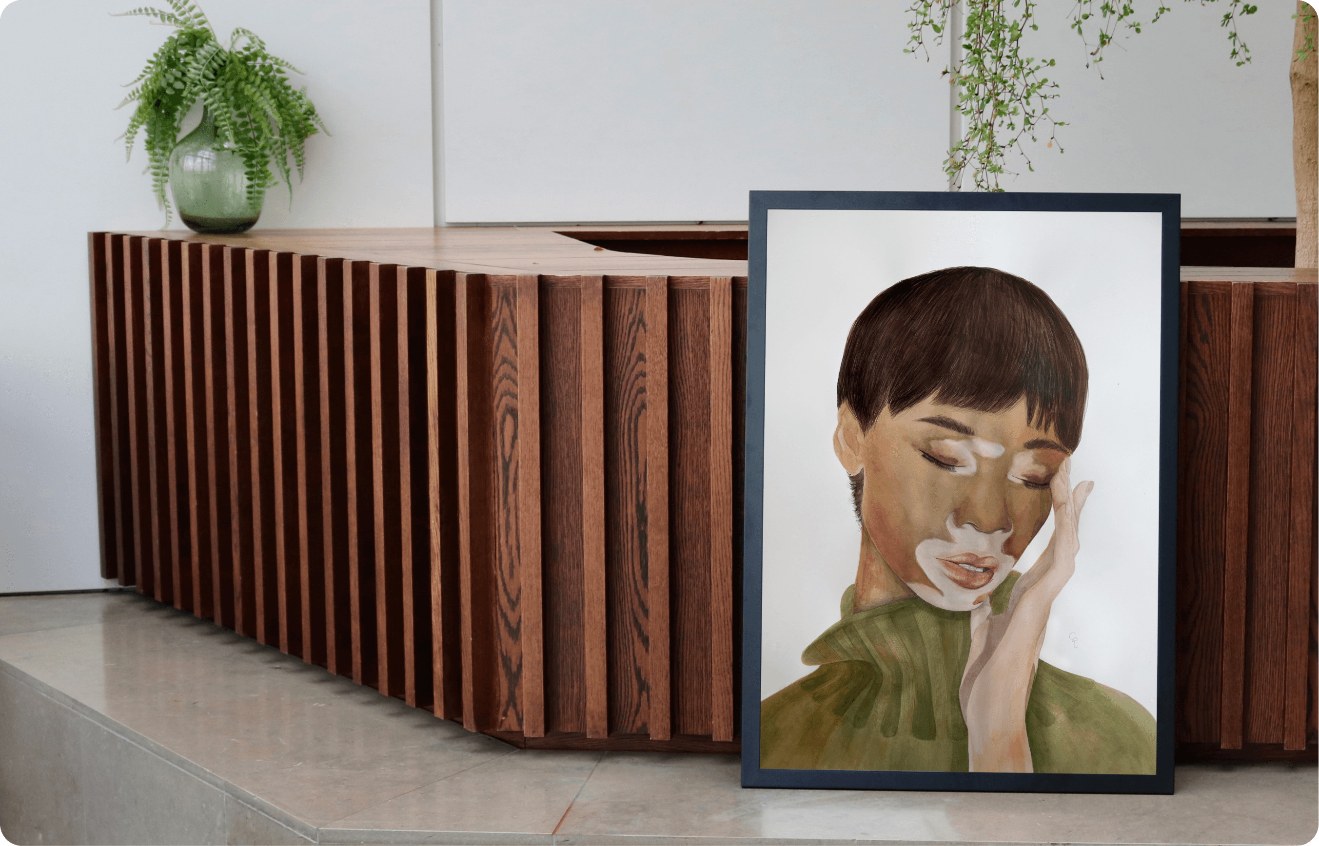 Committed to broadening access to art, she seeks to position her work in diverse environments, from galleries and public installations to hotels, magazines, and commercial spaces. By situating portraiture within everyday contexts, she aims to create unexpected encounters - moments where people might pause, connect, and feel represented. Her approach reflects a desire not only to create technically refined work, but to ensure it reaches varied audiences across different formats and locations, extending the relevance and visibility of contemporary portraiture.