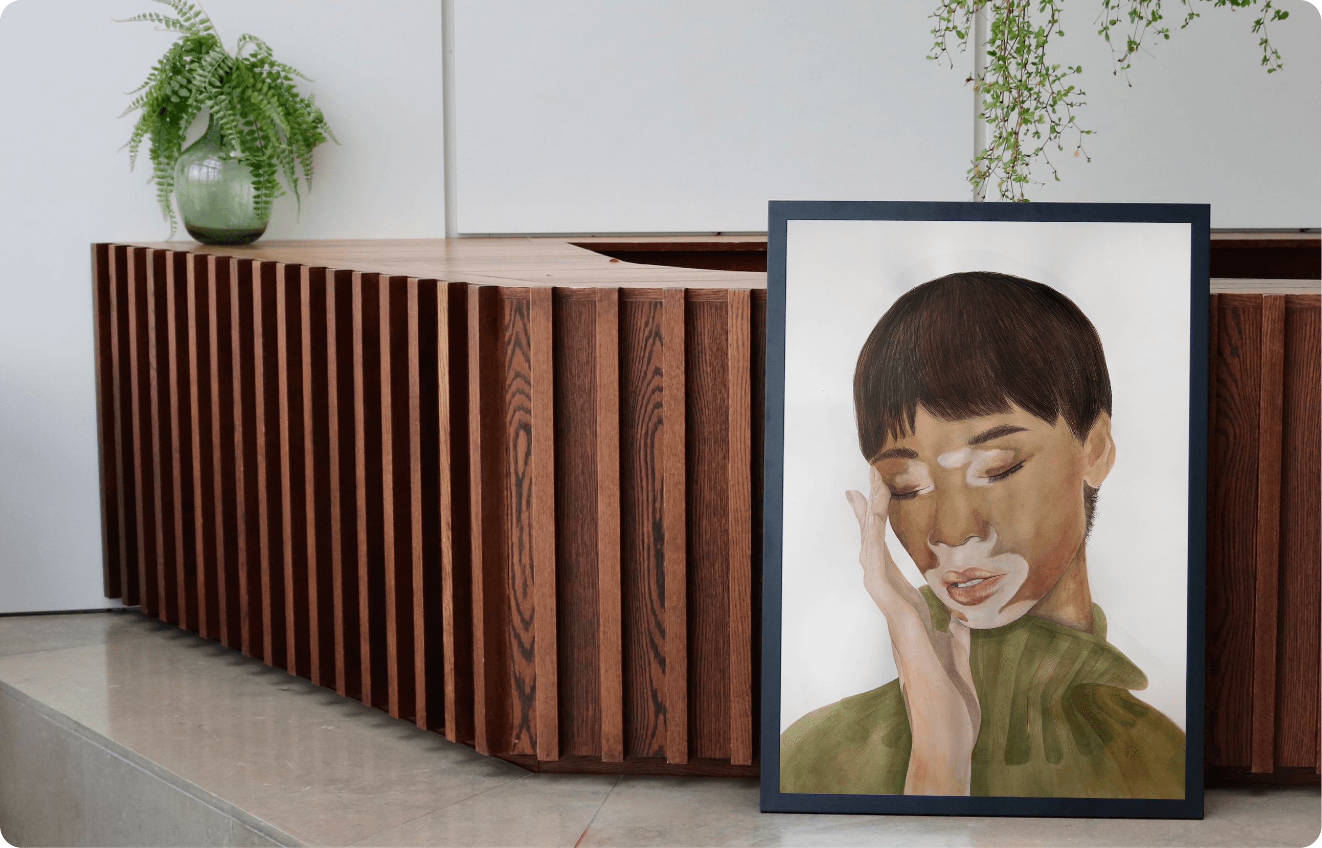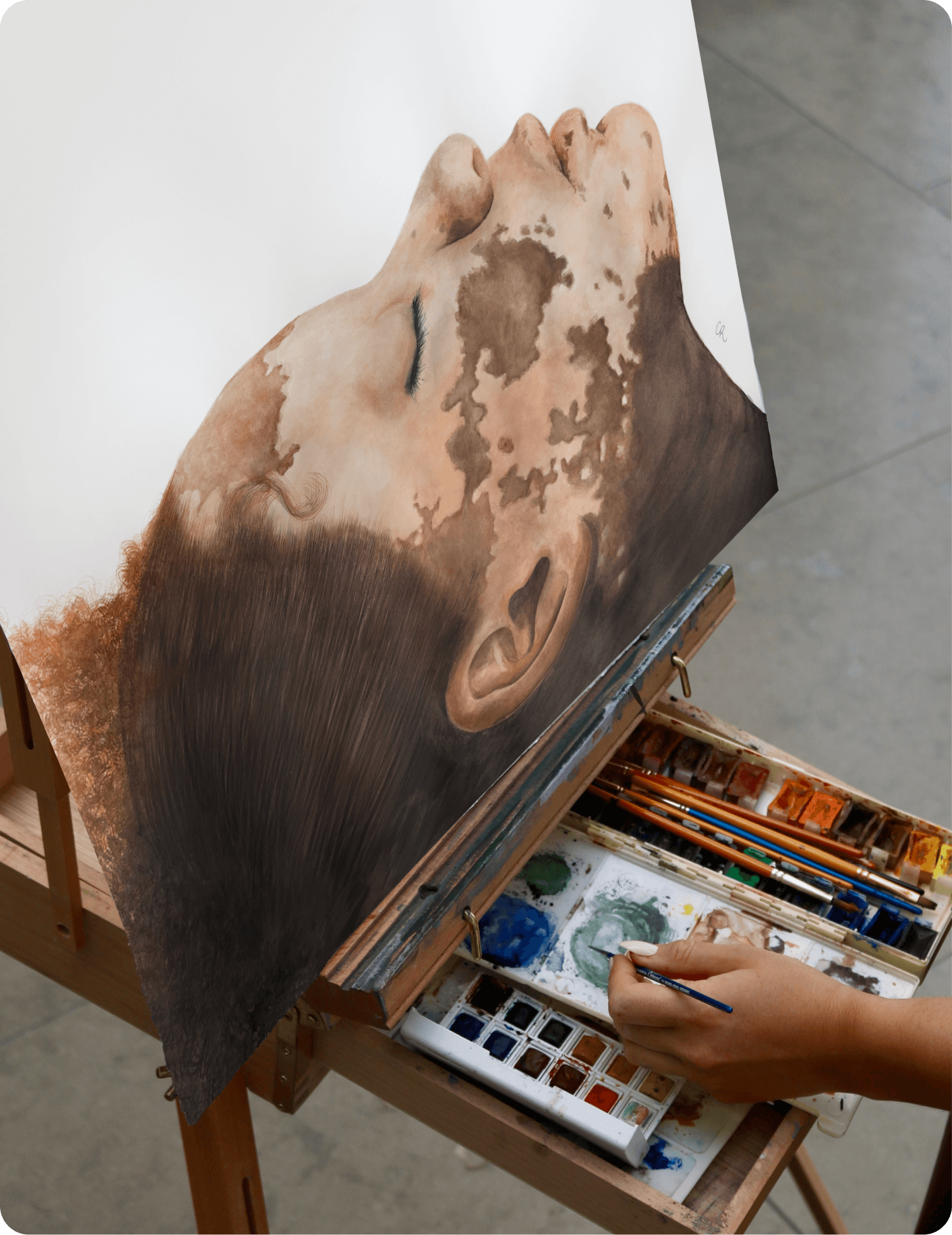 My most recent paintings focus on embracing the uniqueness of individuals with unusual facial pigmentation. As I see it, a fair world is one in which all people - irrespective of race, social class or disability - can have a positive self-concept. Self-concept revolves around the face, as it is the primary means by which humans recognise and interact with each other. Vitiligo is a rare autoimmune skin condition that manifests uniquely in each individual. Having vitiligo myself, I see it first-hand.