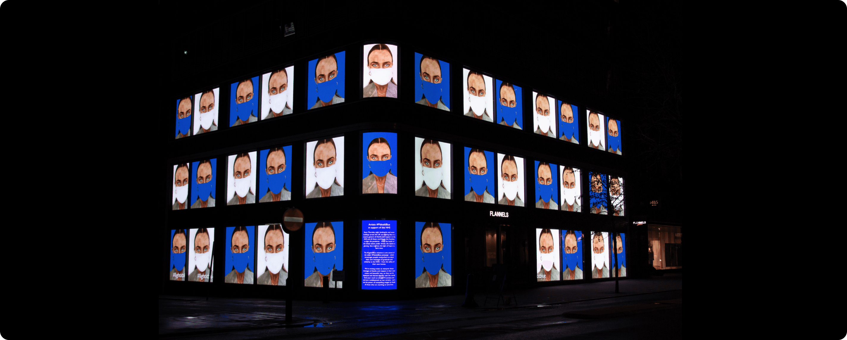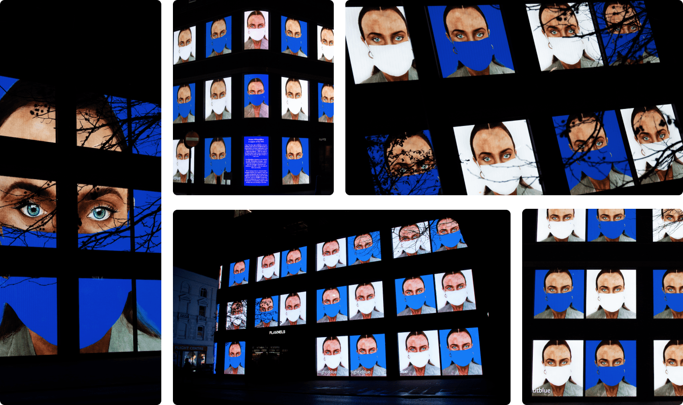 I teamed up with W1 Curators and FLANNELS for the 'Make it Blue' Campaign, illustrating the NHS's profound impact during the pandemic. My artwork emphasised the strength of medical staff and the anonymity of mask-wearing. Using negative space, I symbolised the loss of visible identities over those two years.